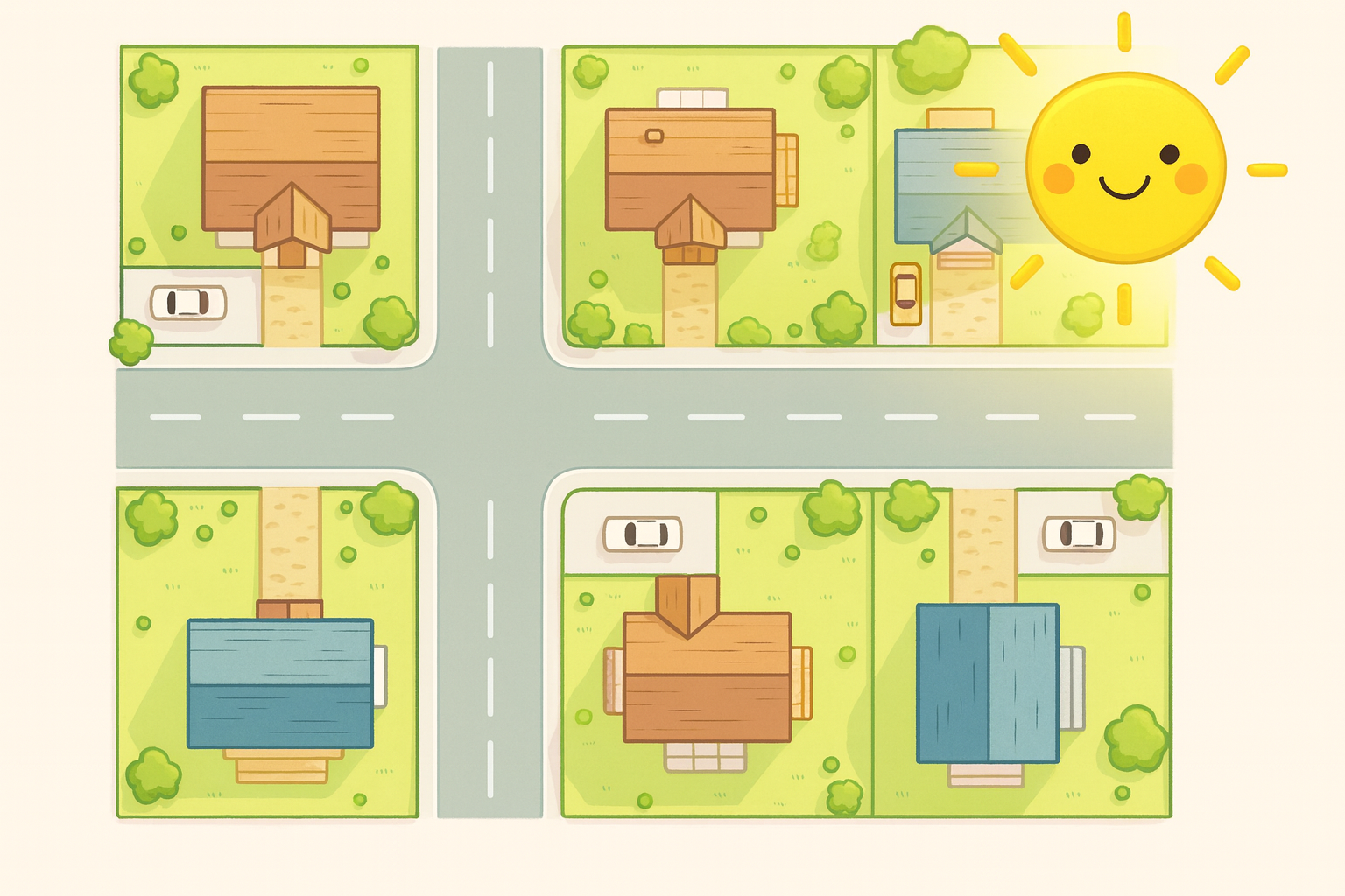 土地の「向き」や「接道方向」は、家の明るさや快適さに大きく影響します。
