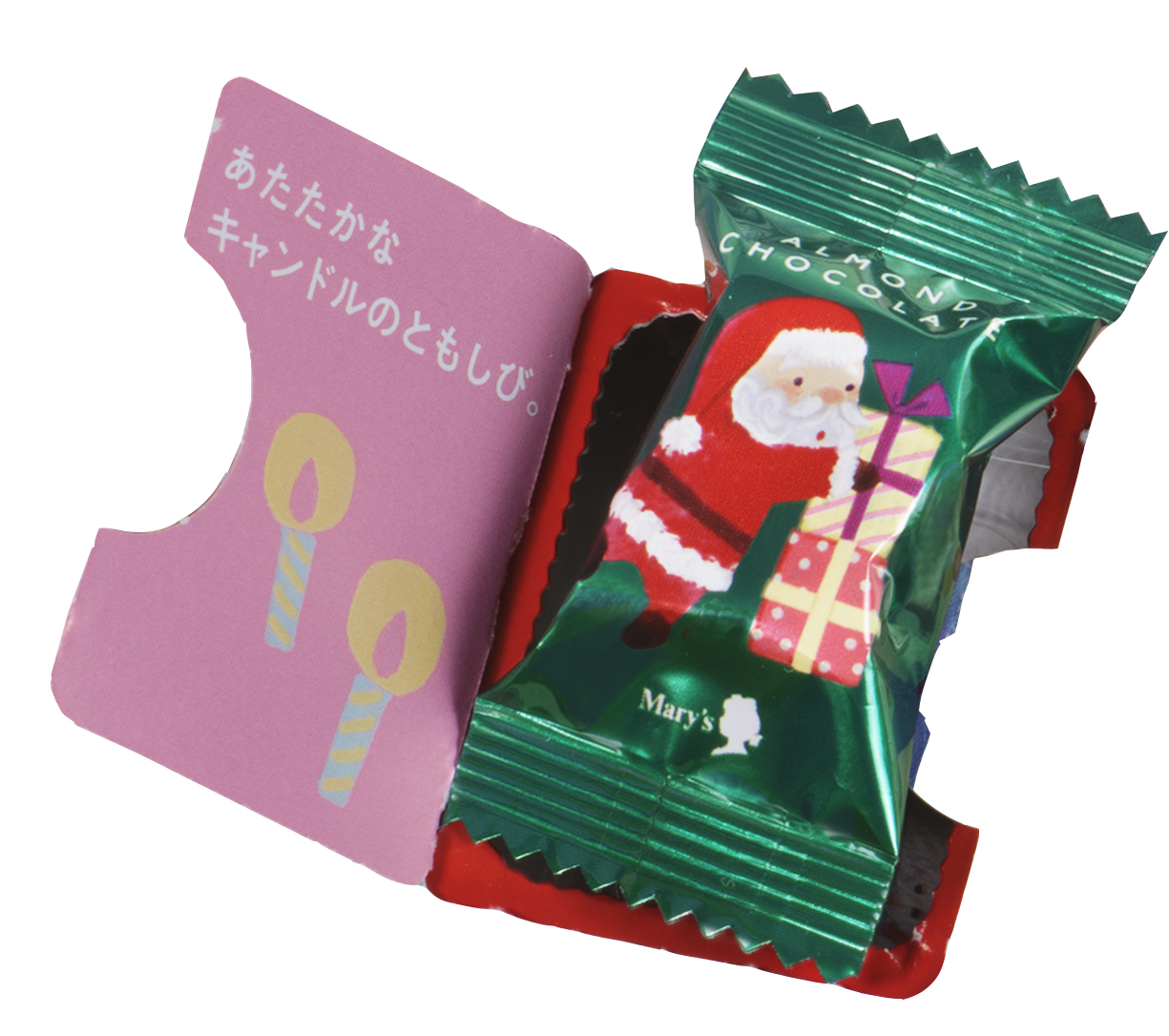 扉の中にはチョコレートのお菓子が入っています。何が入っているかはおたのしみ💕