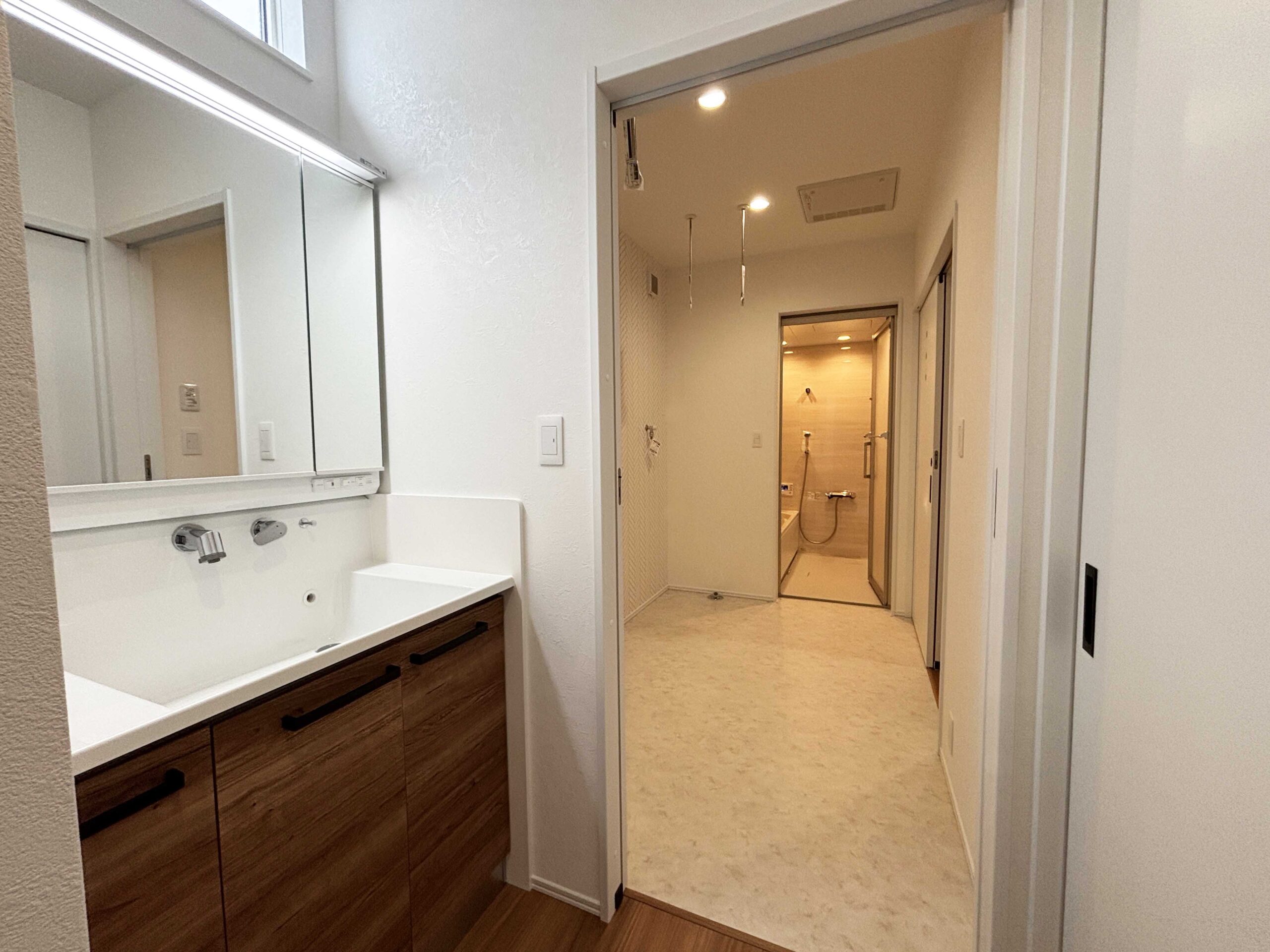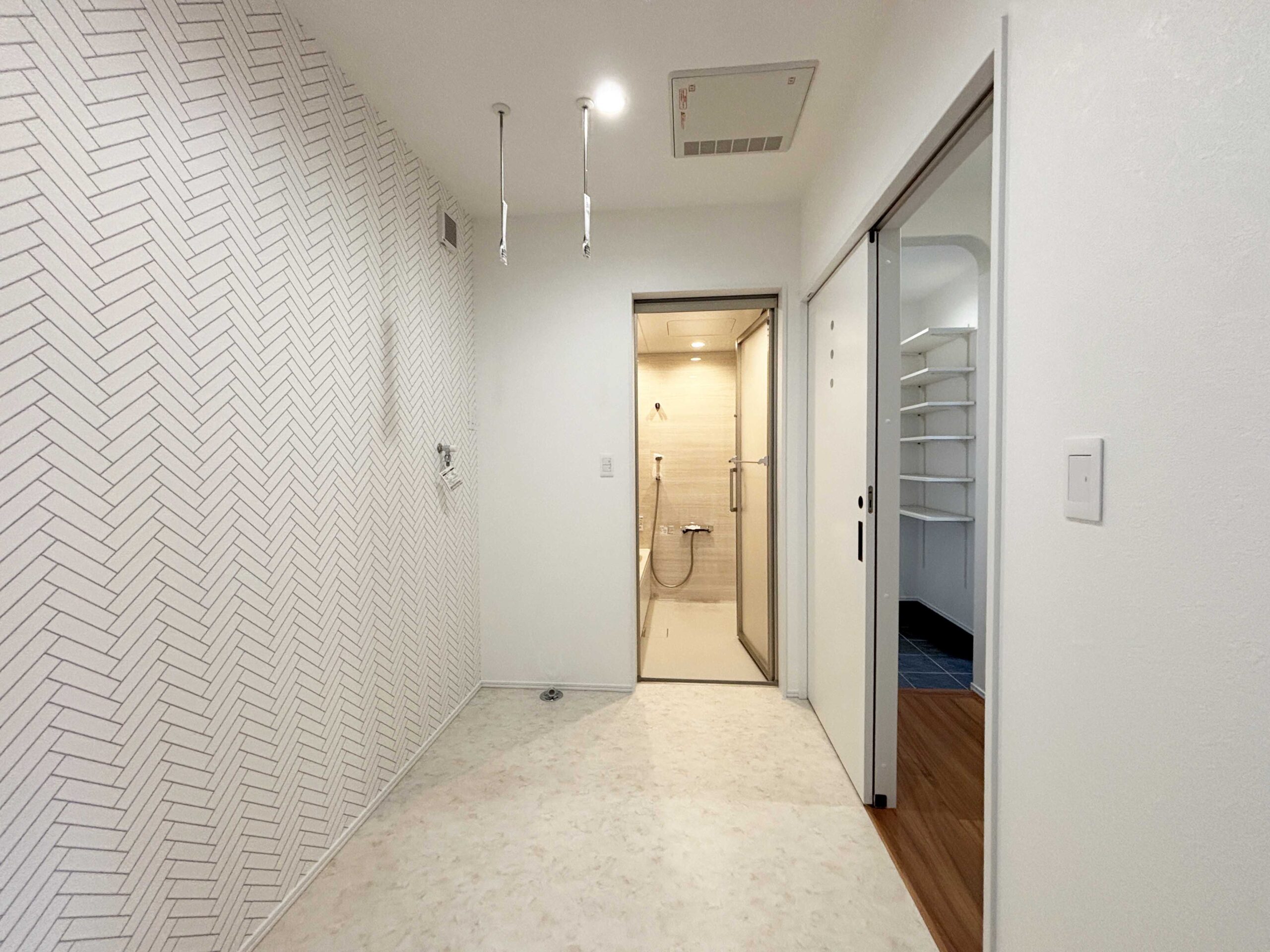 玄関→WIC→ランドリーへと抜けられるウォークスルー動線。
