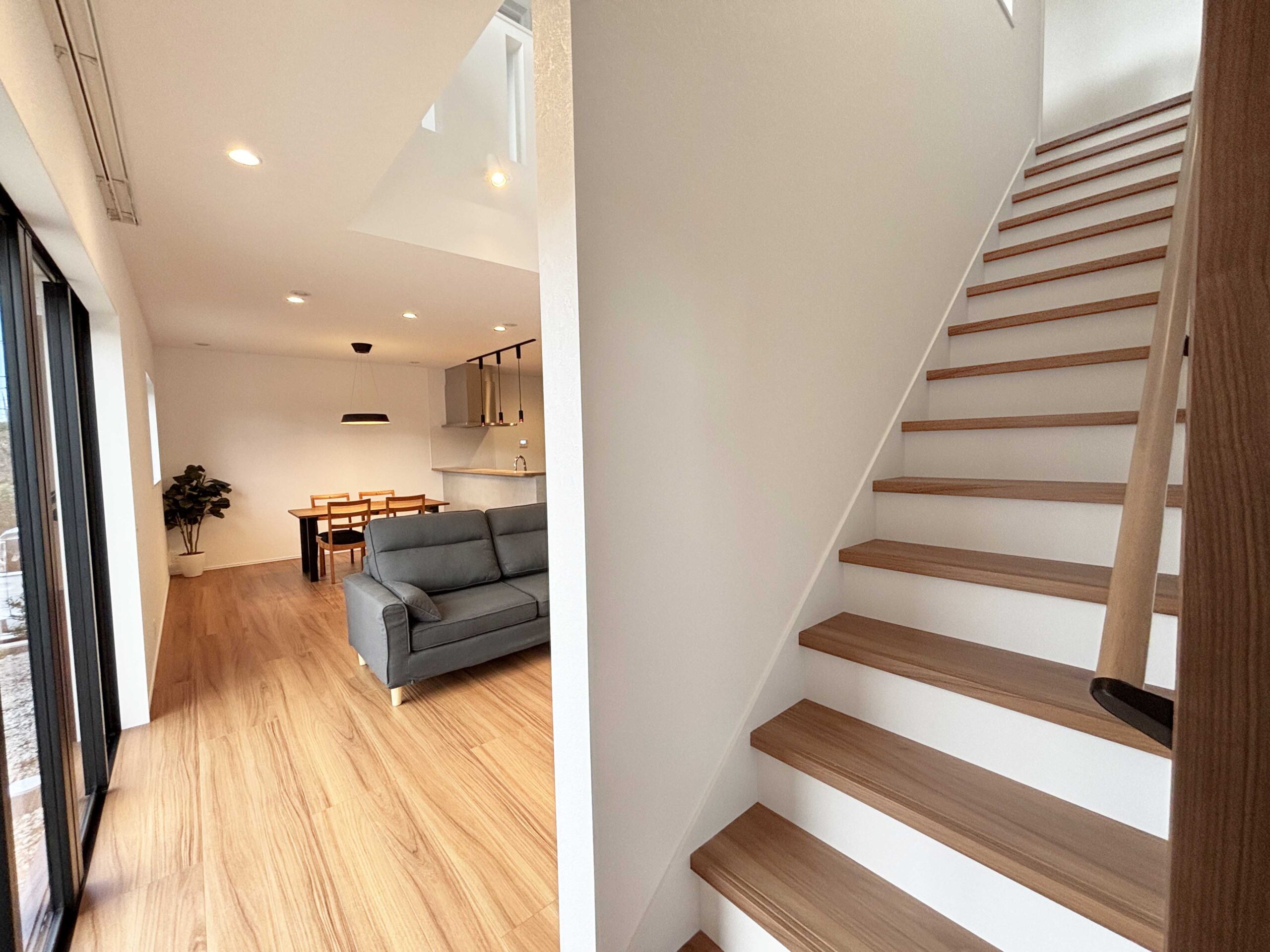 今回ご覧いただけるのは、延床約35坪・3LDK・吹き抜けのある明るく開放的な二階建て住宅。